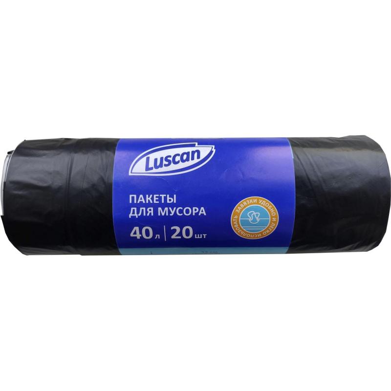 Мешки для мусора ПВД 40л 30мкм 20шт / рул черные 55х70см Luscan с завязками