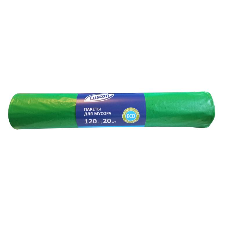 Мешки для мусора ПВД 120л 40мкм 20шт / рул зеленые 70x110см Luscan Bio