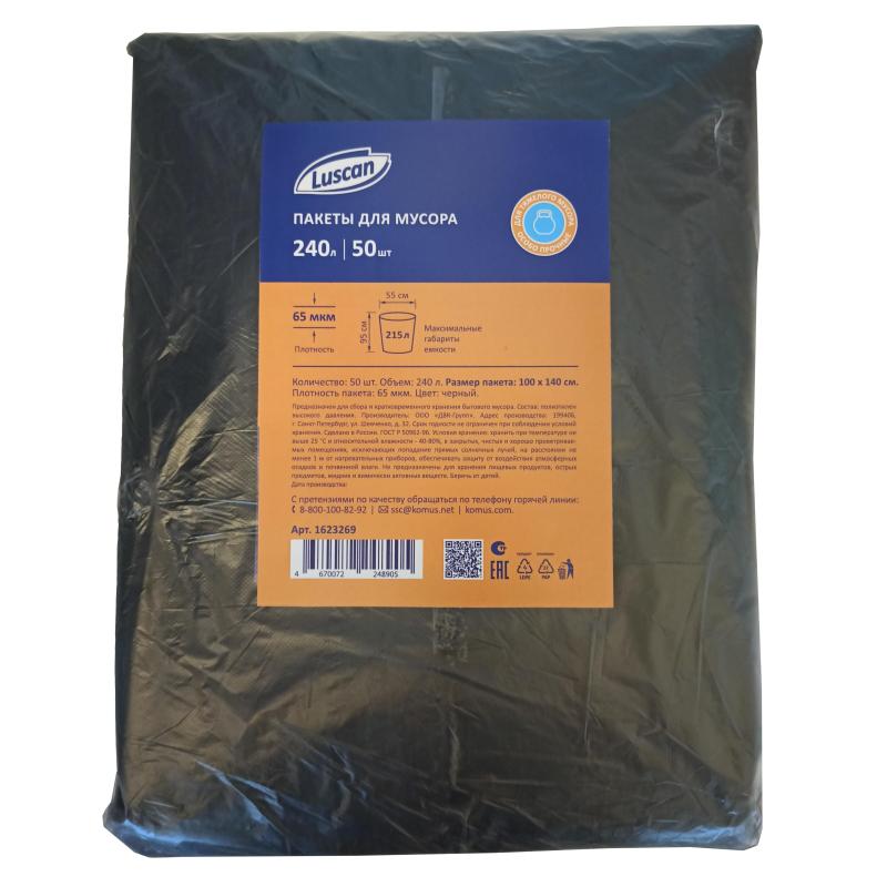 Мешки для мусора ПВД 240л 100х140см 65мкм черные 50шт / уп Luscan