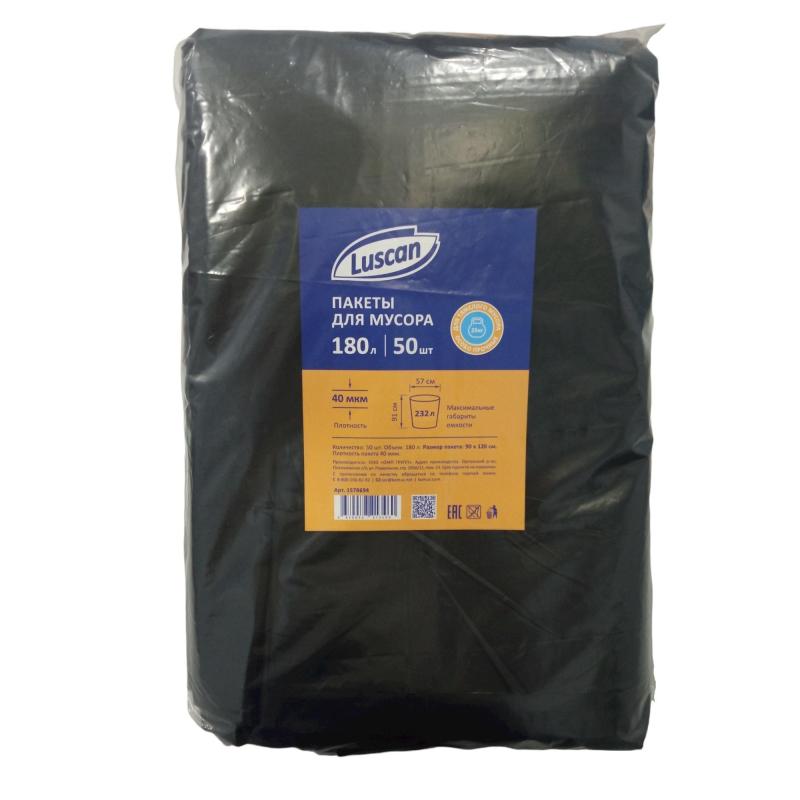 Мешки для мусора ПВД 180л 40мкм 50шт / уп черные 90x120см Luscan