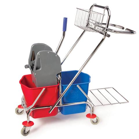 Тележка уборочная BRABIX, ведра 2х20 л, 2х11 л, механический отжим, держатель для мешка, мешок, 2 поддона, 601501