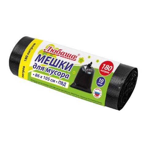 Мешок для мусора 180 л, черные в рулоне 10 шт., ПВД 20 мкм, 86х105 см, ЛЮБАША супер-эконом, 608918