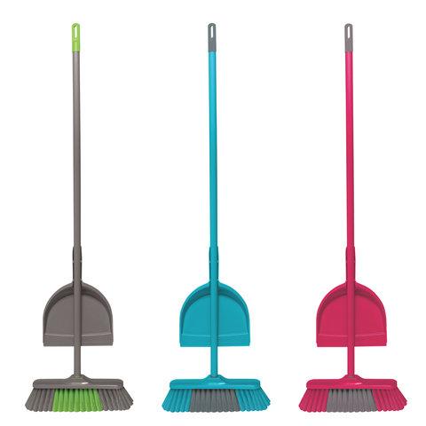 Щетка для уборки с черенком 110 см, комплект с совком, ширина 32 см, щетина 7 см, еврорезьба, YORK "Tandem", 82020