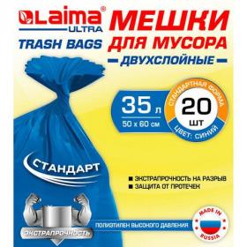 Мешки для мусора LAIMA "ULTRA" 35 л синие, в рулоне 20 шт. особо прочные, ПВД 20 мкм, 50х60 см, 607686