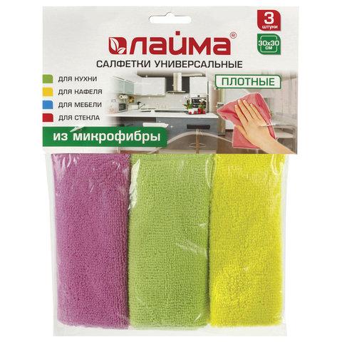 Салфетки из МИКРОФИБРЫ универсальные 30х30 см, КОМПЛЕКТ 3 шт., ассорти, 300 г / м2, LAIMA, 601245