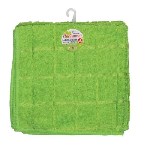 Салфетки из МИКРОФИБРЫ универсальные 40х40 см, КОМПЛЕКТ 3 шт., КЛЕТКА, зеленые, 220 г / м2, ЛЮБАША, 603948