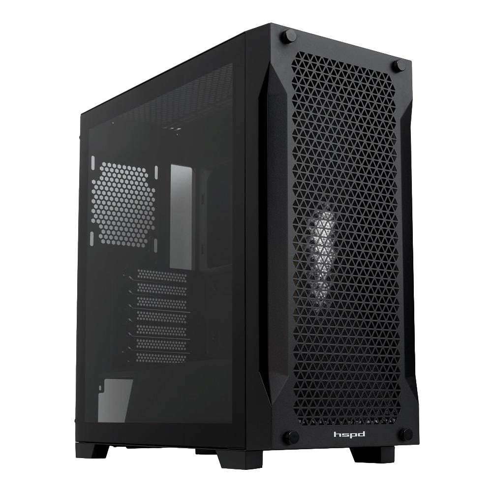 Корпус без блока питания / Case HSPD M540, Mesh Mid Tower, Black, TG, 0.45 SPCC, no fans, ATX, mATX, mITX, 160 / 300 / 150mm, 2x2.5", 2x3.5", 7xPCI, 1xUSB-A 3.0, 2xUSB-A 2.0, 365x216x405mm