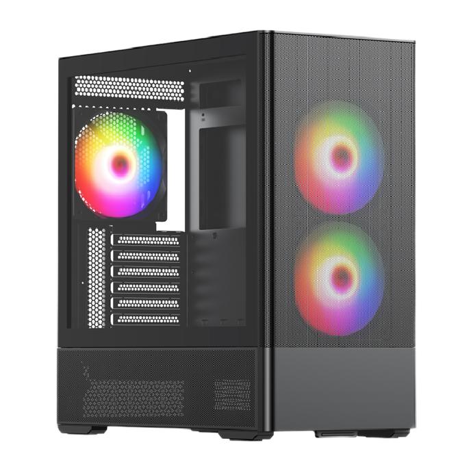 Case HSPD M310, Mesh Mini-tower, Black, TG, 0.4 SPCC, 3x120mm ARGB (Orbis F1) mATX, mITX 180 / 280 / 160mm 1x2.5", 1x3.5", 4xPCI 2xUSB-A 3.0 452x277x418mm