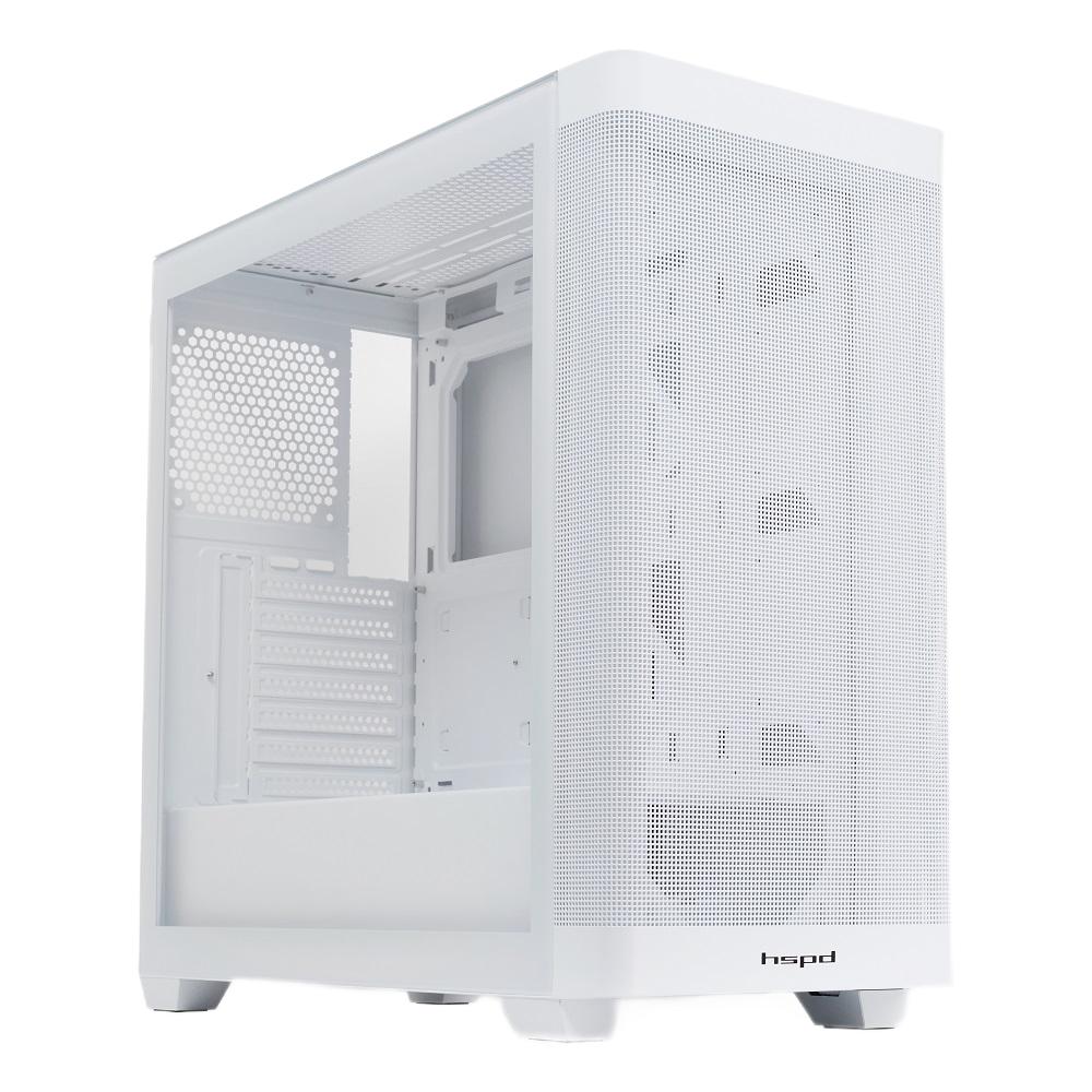 Корпус без блока питания / Case HSPD M740, Mesh Mid Tower, White, TG, 0.6 SPCC, no fans, E-ATX, ATX, mATX, mITX, 170 / 400 / 200mm, 4x2.5", 2x3.5", 7xPCI, 1xUSB-A 3.0, 1xUSB-C 3.0, 460x218x450mm