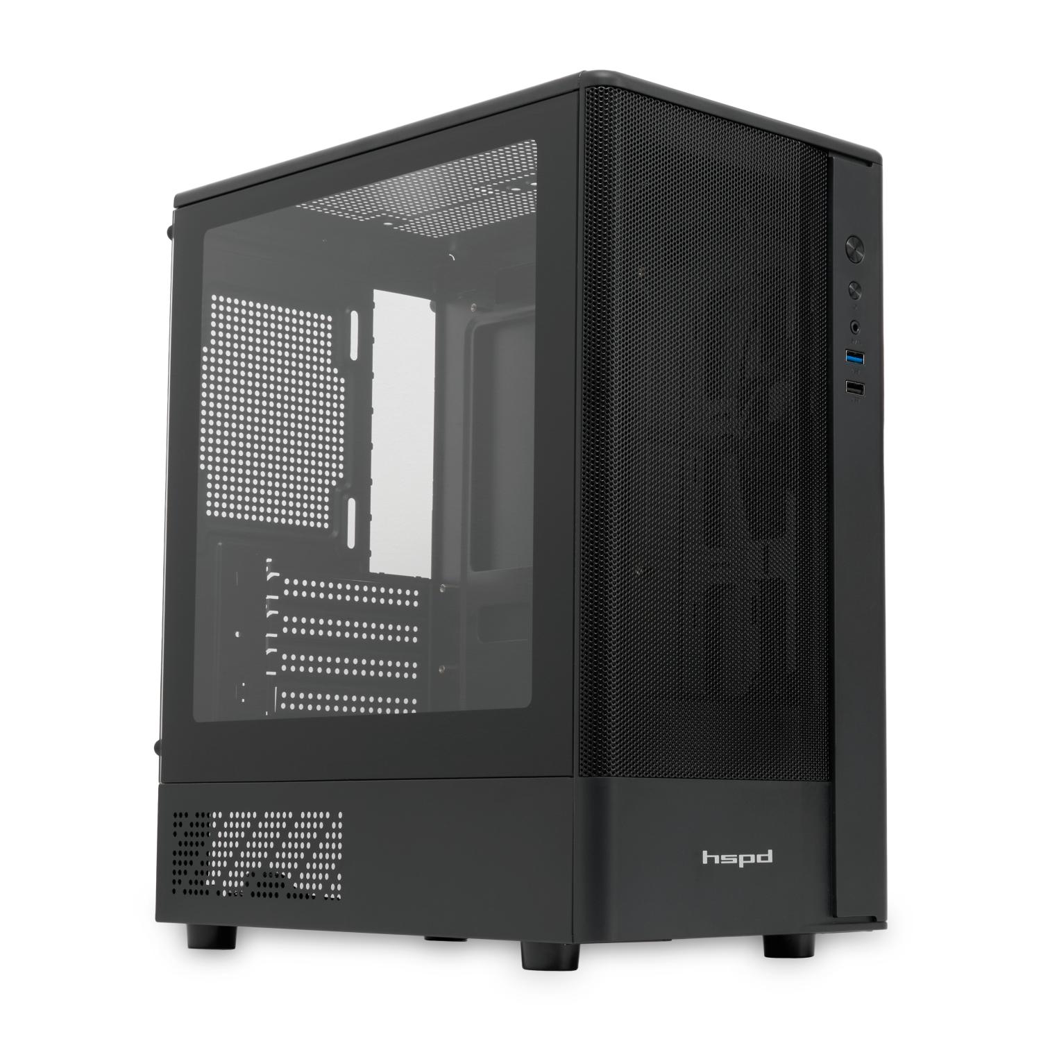 Корпус без блока питания / Case HSPD M340, Mesh Mid Tower, Black, TG, 0.5 SPCC, no fans, mATX, mITX, 165 / 350 / 200mm, 2x2.5", 2x3.5", 4xPCI, 1xUSB-A 3.0, 2xUSB-A 2.0, 415x220x410mm