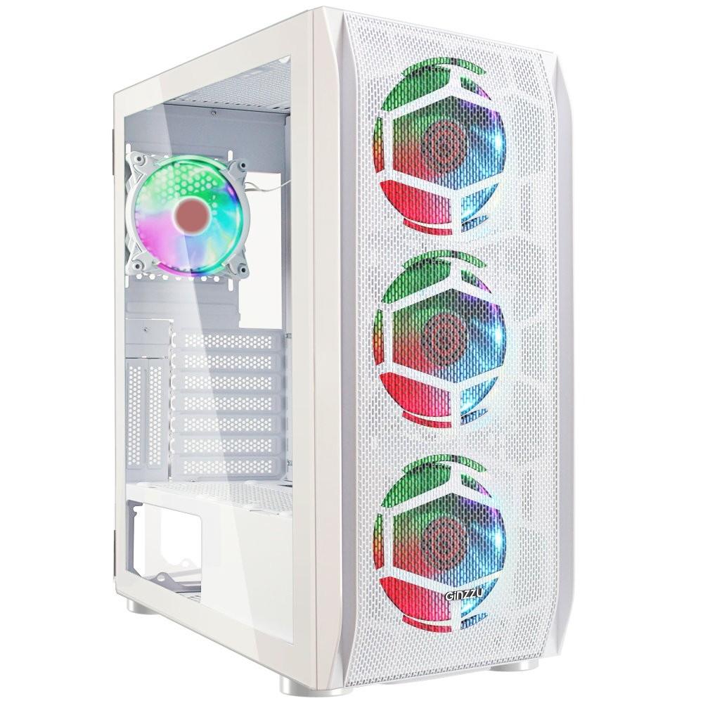 Ginzzu GL 390 боковая дверца закаленное стекло на петлях на магнитах, controller CRC10, 4* 12R6W FAN 12CM RGB Белый