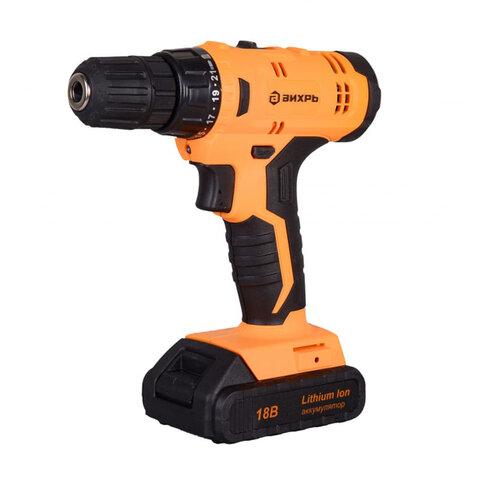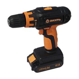 Дрель-шуруповерт безударная АККУМУЛЯТОРНАЯ, с двумя аккумуляторами 1,5 Ач, 18 В, ВИХРЬ ДА-18Л-2КА, 72 / 14 / 25