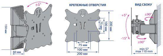 Кронштейн для телевизора Arm Media LCD-405 черный 26"-60" макс.40кг настенный поворотно-выдвижной и наклонный