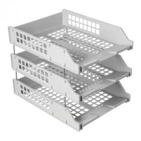 Лотки горизонтальные для бумаг, НАБОР 3 шт. (340х260х240 мм), на металлических стержнях, серые, "Strong", ЛТГ-63794