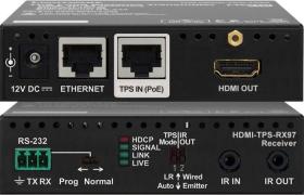 HDMI-TPS-RX97 HDBaseT приемник HDMI1.4+Ethernet+RS-232+двунаправленный ИК сигналов по одному кабелю витой пары до 170 метров; поддержка HDCP EDID 3D и 4K / UHD PoE.