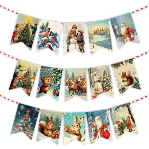 Гирлянда новогодняя "Ретро", 15 флажков, 10х15 см, картон, 2,5 м жгут, ЗОЛОТАЯ СКАЗКА, 592585