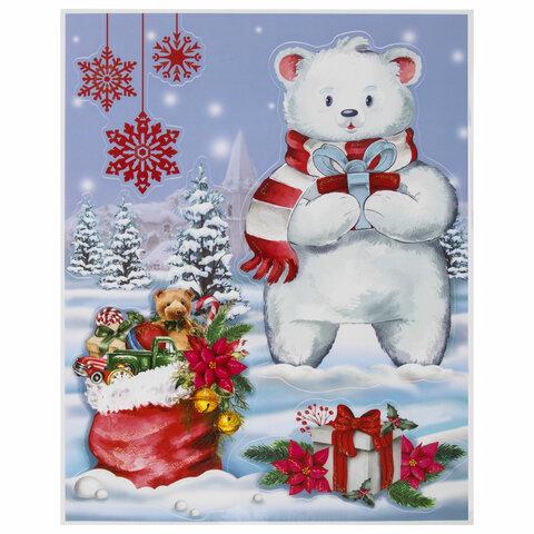 Украшение для окон и стекла ЗОЛОТАЯ СКАЗКА "Новогодняя композиция 1", 30х38 см, ПВХ, 591247