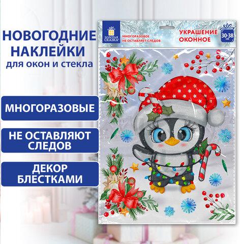 Наклейка для окон двусторонняя, МНОГОРАЗОВАЯ, 30х38 см, "Пингвин", ЗОЛОТАЯ СКАЗКА, 592136