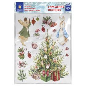 Наклейка для окон (1 штука) двусторонняя МНОГОРАЗОВАЯ 30х38 см, "Ассорти № 1", ЗОЛОТАЯ СКАЗКА, 591921