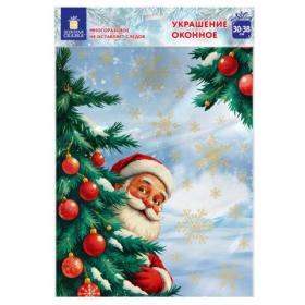 Наклейка для окон двусторонняя МНОГОРАЗОВАЯ 30х38 см "Дед Мороз и олень", ЗОЛОТАЯ СКАЗКА, 591179