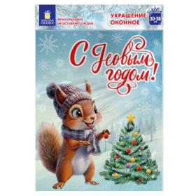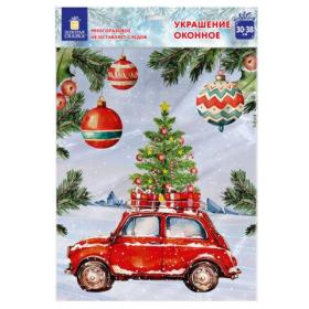 Украшение для окон и стекла ЗОЛОТАЯ СКАЗКА "Новогодняя композиция 4", 30х38 см, ПВХ, 591250
