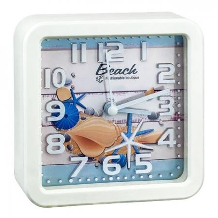Часы будильник Perfeo Quartz PF-TC-014, квадратные, 10.5x10.5 см, ракушка (PF_C3148)