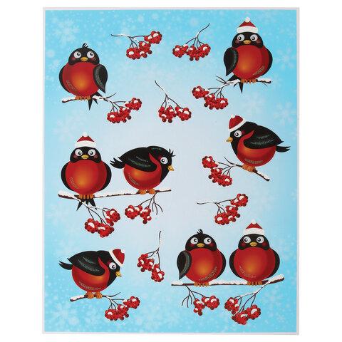 Наклейка для окон двусторонняя МНОГОРАЗОВАЯ 30х38 см "Снегири", ЗОЛОТАЯ СКАЗКА, 591185