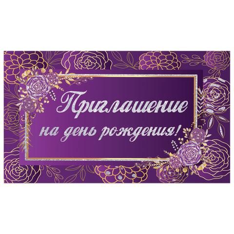 Приглашение на день рождения 70х120 мм (в развороте 70х240 мм), "Фиолетовое", блестки, ЗОЛОТАЯ СКАЗКА, 128913