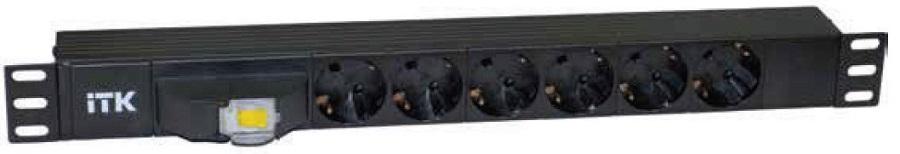 ITK PDU 6 розеток DIN49440 (нем.станд.), с автоматом 10А, 1U, без шнура, вх.IEX320 C14, алюминиевый профиль, черный