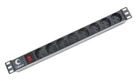 Cabeus PDU-8P Блок евророзеток для 19" шкафов, горизонтальный, 8 розеток, 10 A, выключатель, гнездо под шнур, алюминиевый корпус