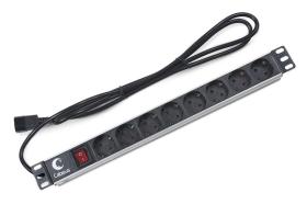 Cabeus PDU-9P-2IEC Блок евророзеток для 19" шкафов, гориз., 9 розеток, 10 A, без выключателя, алюминиевый корпус, шнур 2 м, вилка IEC 320 C14