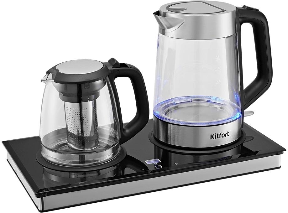 Чайный набор Kitfort КТ-6776 1.8л. 2200Вт черный / нержавеющая сталь корпус: Металл / стекло / пластик