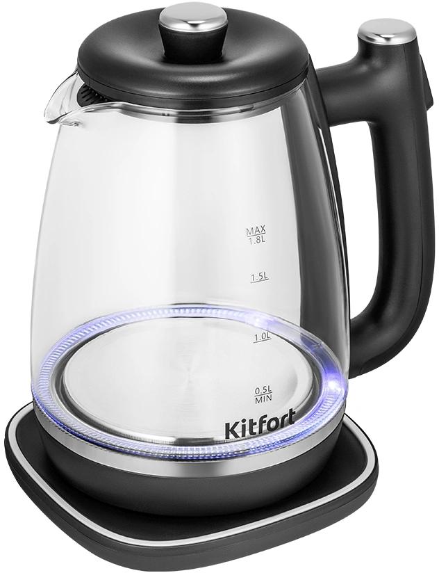 Чайник электрический Kitfort КТ-6764 2.2л. 1800Вт черный / серебристый корпус: стекло / металл / пластик (KT-6764)
