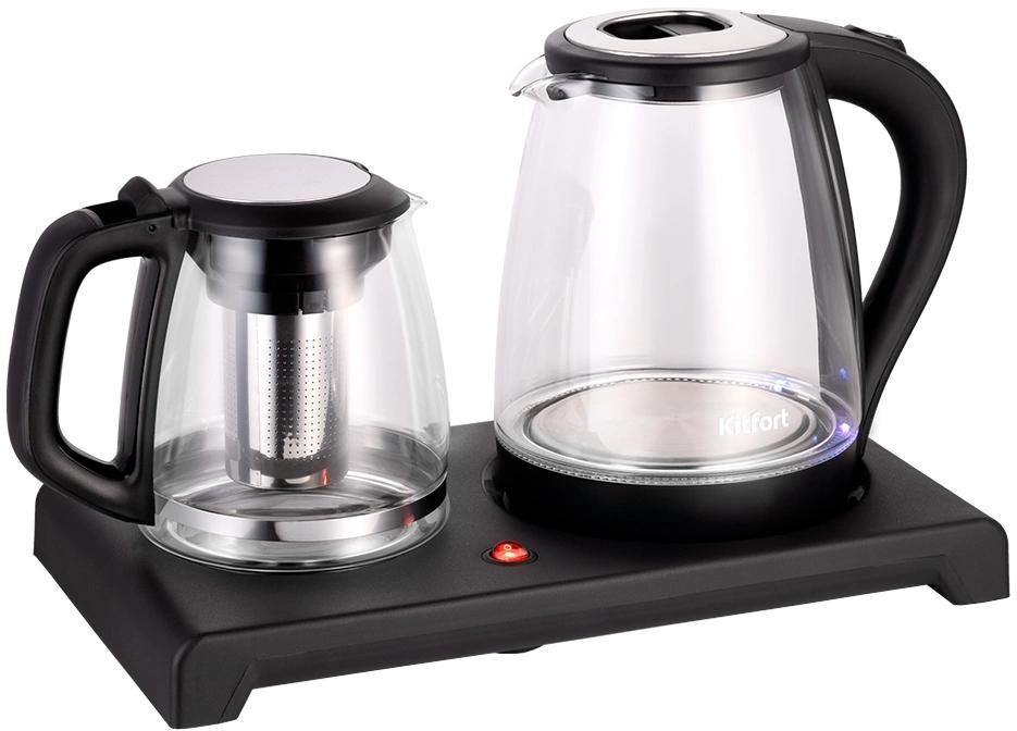 Чайный набор Kitfort КТ-6180 2л. 1500Вт черный корпус: стекло / пластик