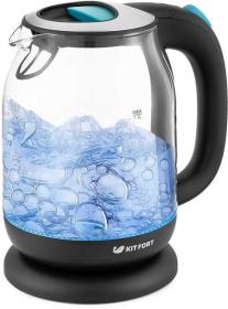 Чайник электрический Kitfort КТ-654-1 1.7л. 2200Вт черный / голубой корпус: стекло / пластик