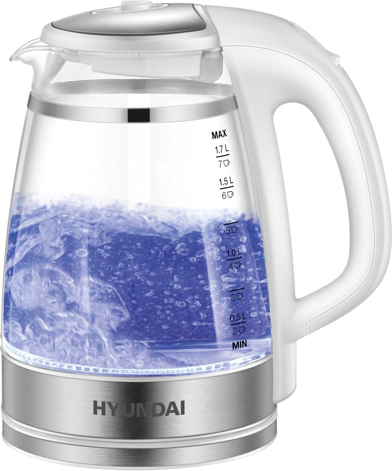 Чайник электрический Hyundai HYK-G3506 1.7л. 2200Вт белый / серебристый корпус: стекло