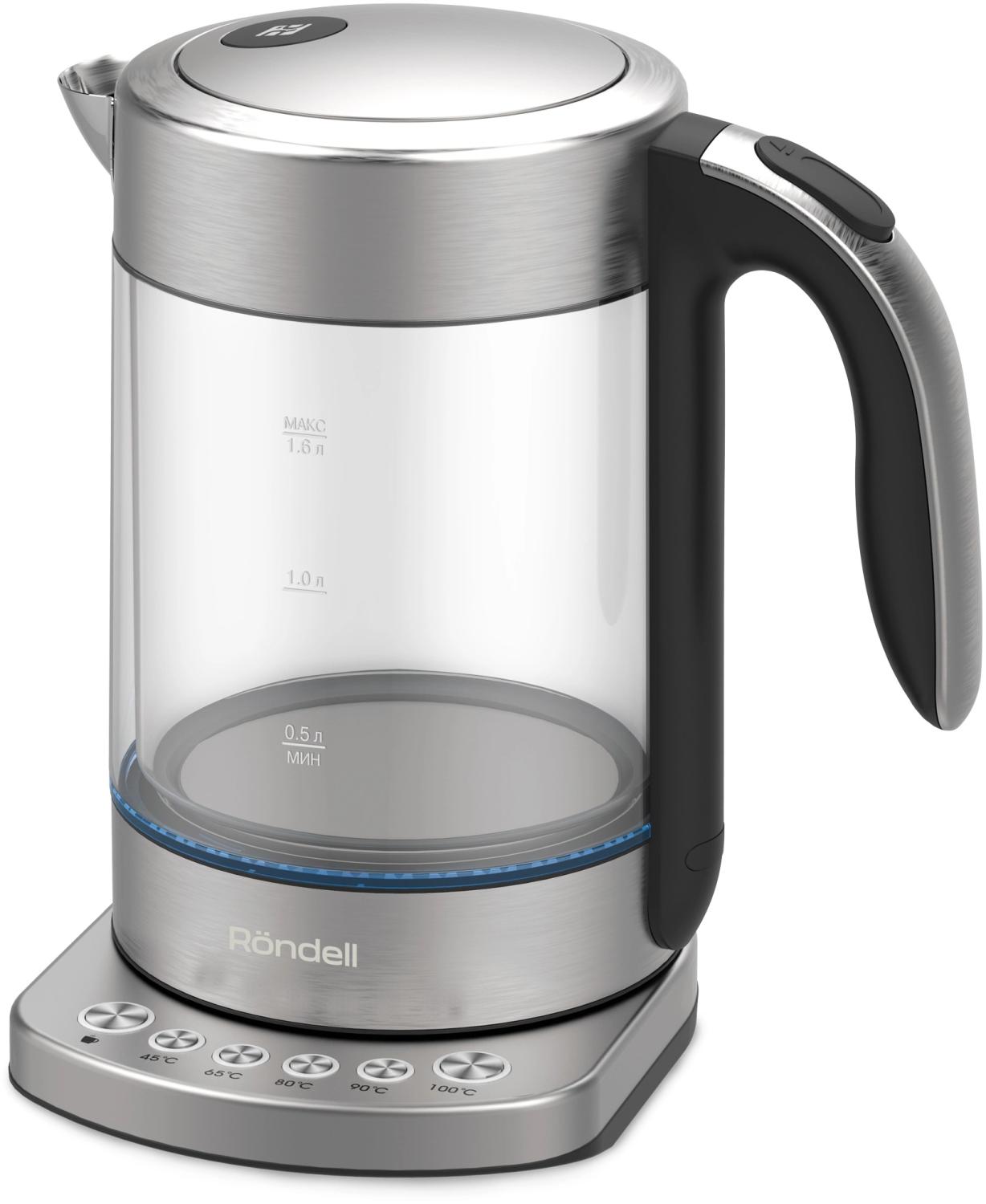 Чайник электрический Rondell RDE-WK888 1.6л. 2200Вт серебристый / прозрачный корпус: стекло
