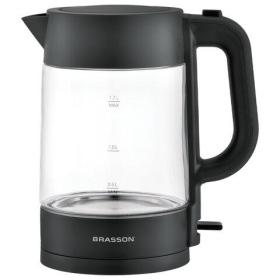 Чайник BRASSON (БРАССОН) KT-561, 1,7 л, 2200 Вт, пластик, подсветка, индикатор уровня воды, черный, 455191