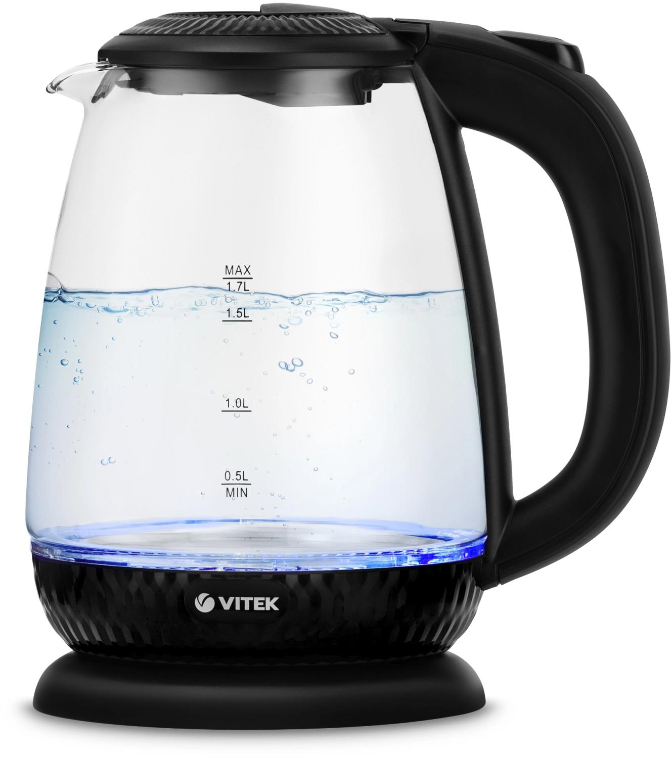 Чайник электрический Vitek VT-7046 1.7л. 2200Вт прозрачный / черный корпус: пластик / стекло