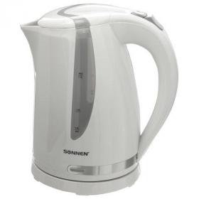 Чайник SONNEN KT-1743, 1,7 л, 2200 Вт, закрытый нагревательный элемент, пластик, белый, 453414