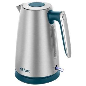 Чайник KITFORT КТ-8725, 1,7 л, 2200 Вт, закрытый нагревательный элемент, сталь / пластик, серебристый / бирюзовый