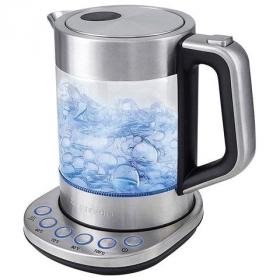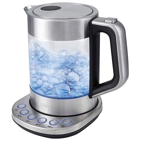 Чайник KITFORT КТ-641, 1,8 л, 2200 Вт, закрытый нагревательный элемент, стекло, серебристый