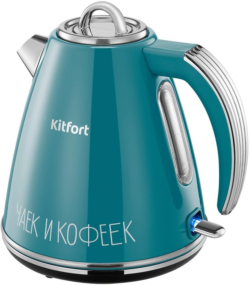 Чайник KITFORT КТ-8725, 1,7 л, 2200 Вт, закрытый нагревательный элемент, сталь / пластик, серебристый / бирюзовый