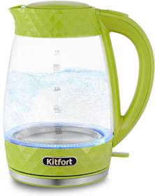 Чайник электрический Kitfort КТ-6123-2 2л. 2200Вт салатовый корпус: стекло / металл / пластик