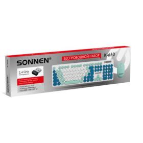 Набор беспроводной: клавиатура 104 клавиши, мышь 4 кнопки, SONNEN K-650, белый / мятный / бирюзовый, 513953