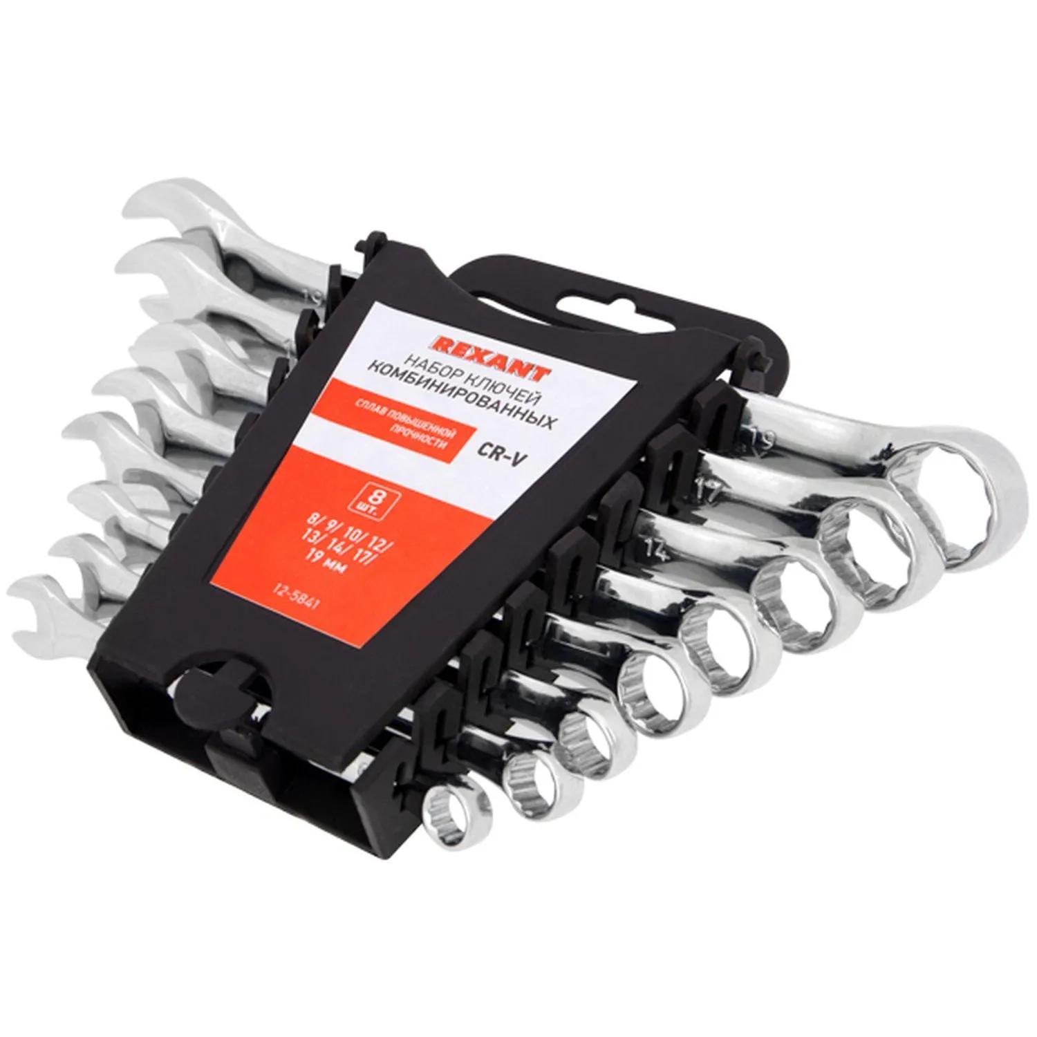 Набор ключей комбинир. 8 шт, 8-19мм CrV, зеркальн. хромир. REXANT 12-5841