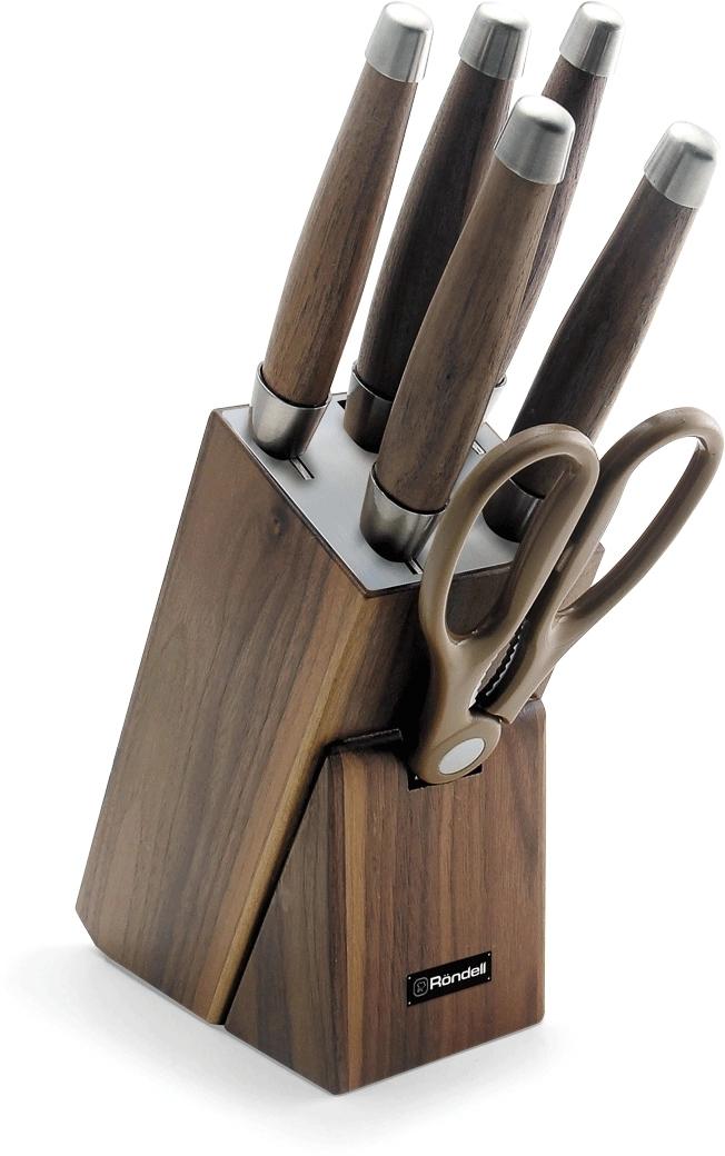 Набор ножей кухон. Rondell Glaymore RD-984 компл.:7предм. подставка / ножницы коричневый подар.коробка