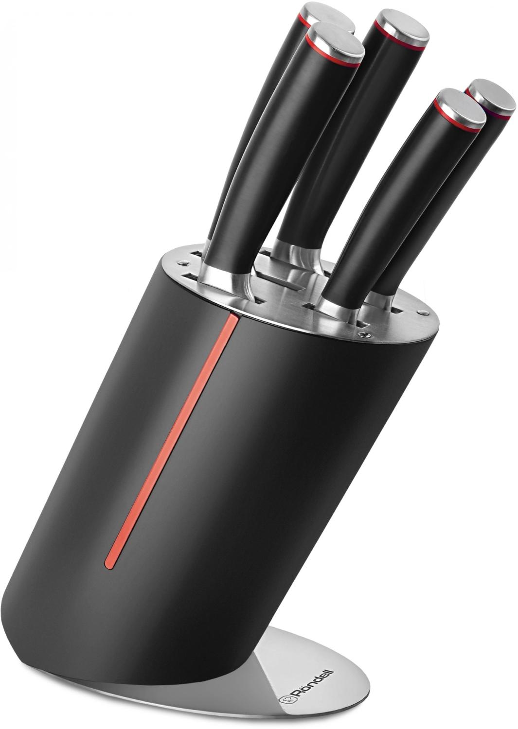 Набор ножей кухон. Rondell Urban Ultimate RD-1130 компл.:6предм. с подставкой черный / красный подар.коробка