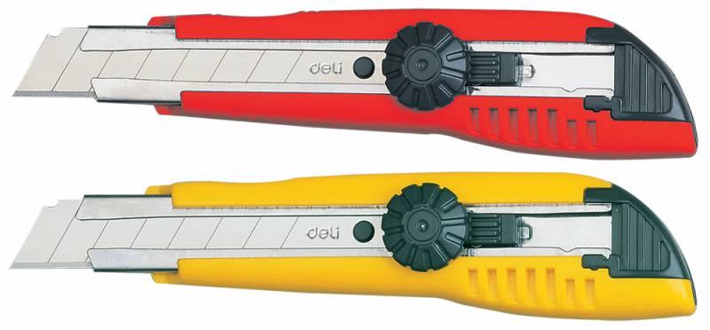 Нож канцелярский Deli E2043 шир.лез.18мм фиксатор усиленный сталь ассорти блистер