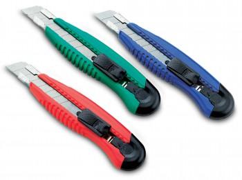 Нож канцелярский 18 мм BRAUBERG "Standard", 3 лезвия в комплекте, автофиксатор, корпус ассорти, 230918